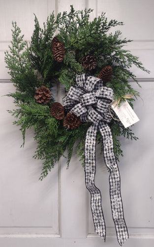 PM86 - Winter Greenery Wreath with Black/White Snowflake Bow